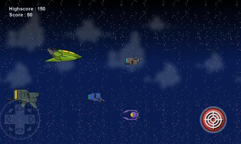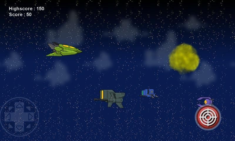 При нажатии кнопки на левой стороне телефона или планшета, выходы джойстика управления направлением. С помощью джойстика можно управлять космическим кораблем.