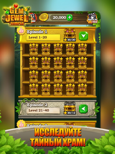 Отправляйтесь в приключение и исследуйте каскад головоломок в Тайном Храме! Решите хитрые головоломки, переключайтесь между каскадом драгоценных камней и станьте самым известным охотником за сокровищами в мире!