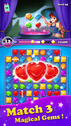 Gems Witch, драгоценные камни соответствуют 3 приключениям, новому современному стилю в обновленной графике, забавным новым игровым режимам и множеству волшебных навыков, которые помогут вам раздавить сотни уровней! Самая новая игра в играх с драгоценностями или жемчужине.