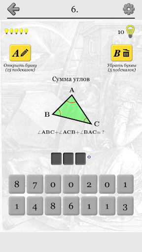 В этом приложении Вы выучите основные геометрические термины: виды треугольников и многоугольников, части круга и важные линии и отрезки, такие как медиана треугольника и касательная к окружности.