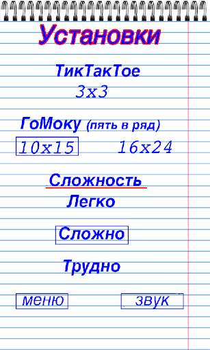 Игра пять в ряд возможна в двух вариантах – на поле 10х15 (для телефонов)
