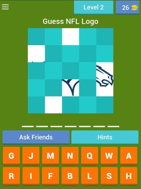 Угадайте NFL Спорт Логотип, используя скрытые изображения в качестве ключа. Вы должны ответить на вопрос, чтобы пройти каждый уровень путем размещения правильные буквы в доступном пространстве, которое является название команд НФЛ. Можете ли вы найти все название команды НФЛ?