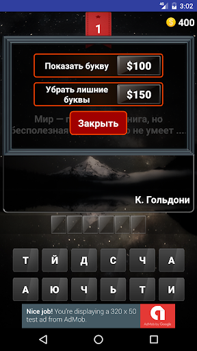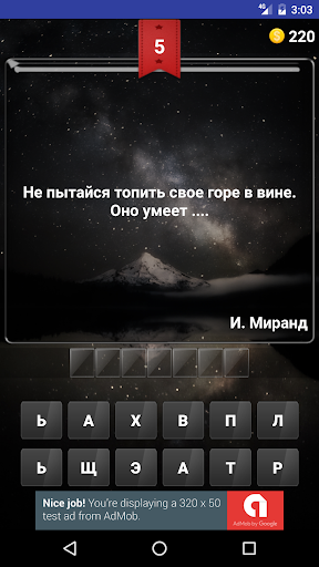 Весёлая и развивающая мозг игра. Нужно угадать пропущенное слово в мудрой цитате известных философов. В этом вам может помочь только логика, так как эта игра на логика, а не на знания.
