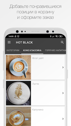 HOT BLACK - это сеть семейных кофеен, в которых каждый найдет для себя любимый напиток. У нас вы сможете насладиться отличным кофе из зёрен 100% арабики, листовыми чаями, какао и горячим шоколадом, а также лимонадами, молочными коктейлями и пряными чаями-латте.