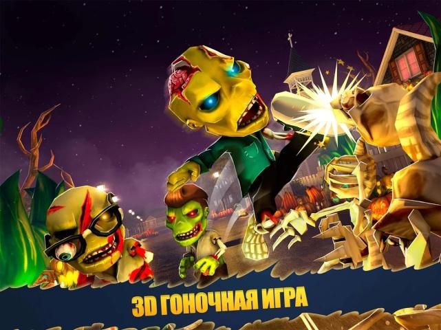-> Подготовьте себя к гонке против всех скелетов вашего города: Выберите ваш любимый костюм зомби из четырех моделей и присоединиться к приключениям!