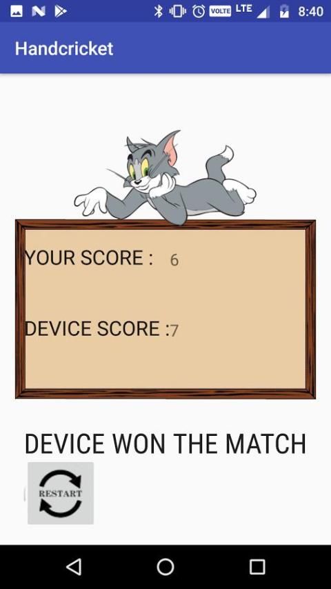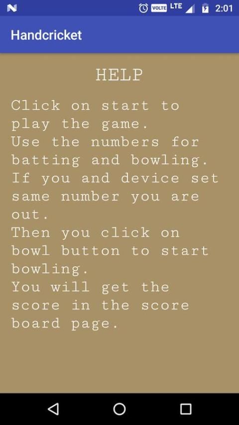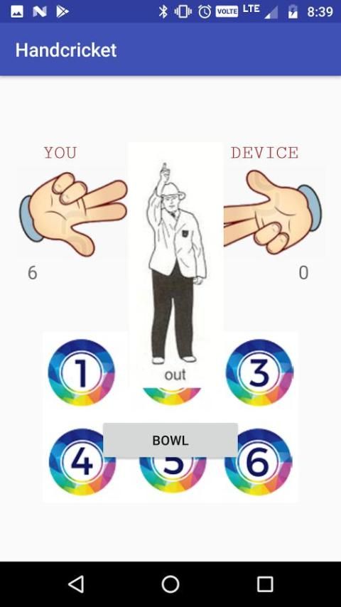 Вы будете битой первым и score.If вы и устройство получить тот же номер, который вы получите out.Then нажмите на кнопку миской, чтобы начать bowling.If устройство не гнаться ваш счет вы выиграете match.On другой стороны, если устройство чеканка ваш счет вы потеряете match.You получите результат в табло страницы.