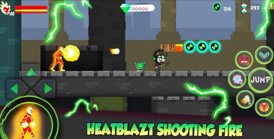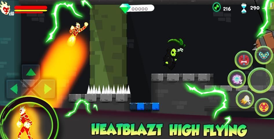 + super transformation natural side scroller gameplay Heatblast with simple amusement reassure cushion controls.