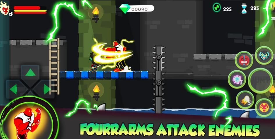 Move up colossal phenomenal slide Cannonbolt extensions, mountains jump and stairs, battle against transformation ancient and run Cannonbolt foes, abstain from Ben in falling blocks, find shrouded power pieces and levels, collect omnitrix coins, swim through hazardous oceans, use your Heatblast weapons to attack enemies, use your force of four arms, jump investigate part of testing omnitrix and addictive bens ten wilderness universes and grounds and sound transforming of echo and lands.