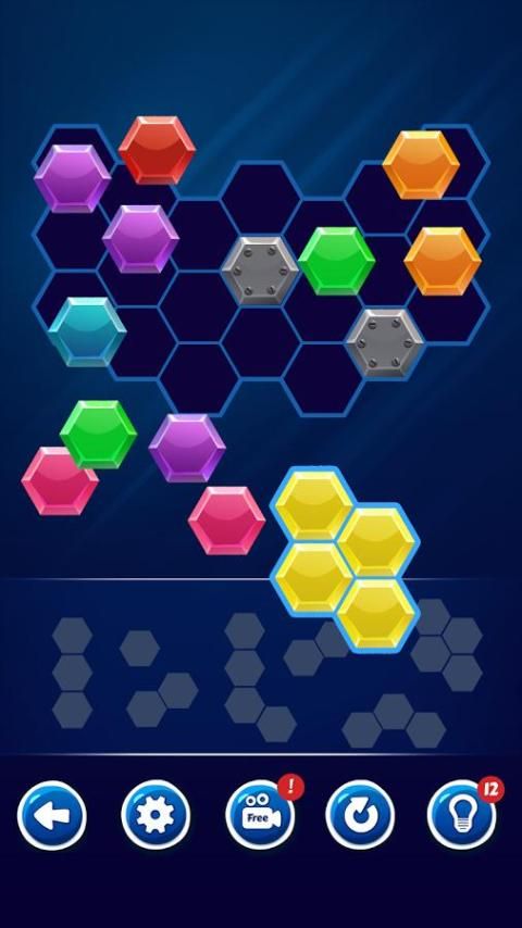 Гекса Блок свободный блок головоломки игры. Уникальная доска шестиугольника головоломки представляет собой интересный вызов даже для продвинутой головоломки.