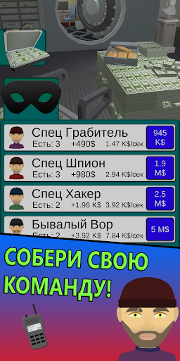Hey, it's a Heist! - Кликер Деньги Ограбление это игра в жанре Idle clicker / Make more money / Кликер / Делай больше денег . В этой игре тебе придется копить деньги чтобы создать криминальную империю. Тебе не обязательно быть как свайпер денег , твои грабители помогут тебе разбогатеть и стать миллиардером. Твоя империя это твое будущее денежное дерево . Хватай деньги и сделай как можно больше бабла . Покупай улучшения для своих грабителей как бабломет . Это игра про деньги которая позволит тебе выполнить все свои мечты. Хватай деньги! Делай больше и создай криминальную империю!