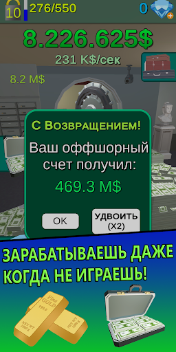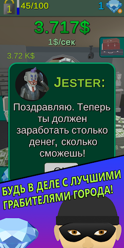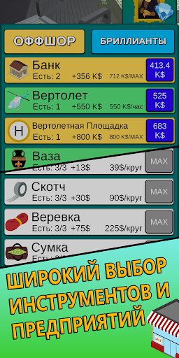 Необычная игра кликер, в которой тебе предстоит ограбить банк и создать империю!