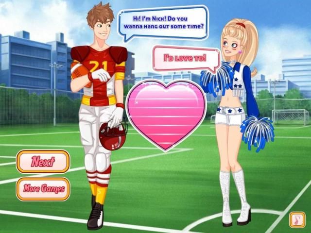 Лиза влюблена в Ника, защитник из школьной футбольной команды. Не могли бы вы дать ей совет моды о ее макияж и наряды на каждую дату, чтобы она могла завоевать его сердце? Есть 6 различных ситуаций и даты. Пожалуйста, выберите подходящий макияж, платье и аксессуары для каждой даты. Она будет забито в конце каждого уровня. веселиться!