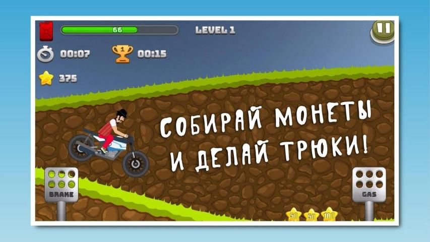 ✔ Выполняй трюки, собирай монеты и доберись до финиша, пока не кончился бензин!