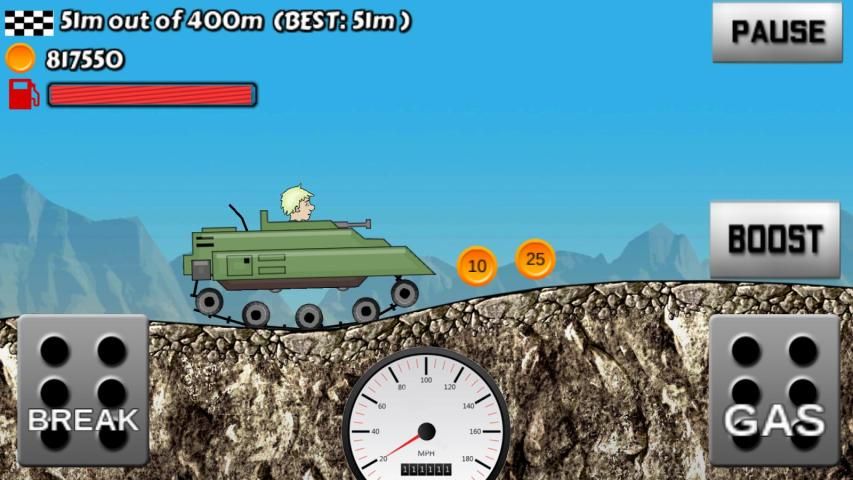 Control your car and climb hills, uphills, ramps and down hills. As you go uphills, collect coins and gain points by doing flips and hangtimes. With these coins you can upgrade your car or buy a new one. Gain bonuses from tricks and collect coins to upgrade your car and reach even higher distances as you become the best uphill racer. Hill Climb Racer Edition has the following features: