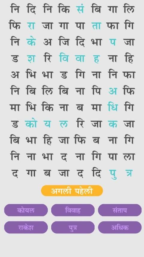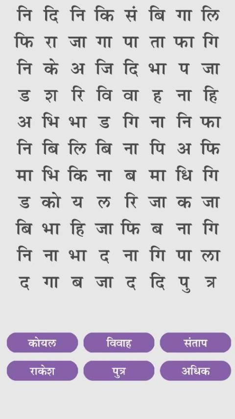 Первый в истории хинди поиск слова игры здесь. Есть тонны поиска слова игры для английского языка, но нет ни на языке хинди для хинди народа.
