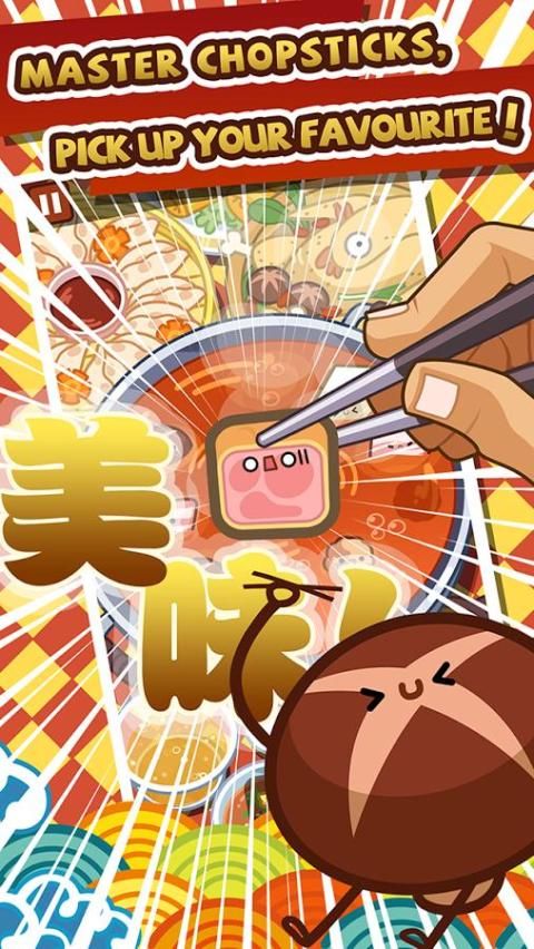 Нажмите, когда палочки для еды указывая на пищу. Тогда вы можете иметь большой еды.