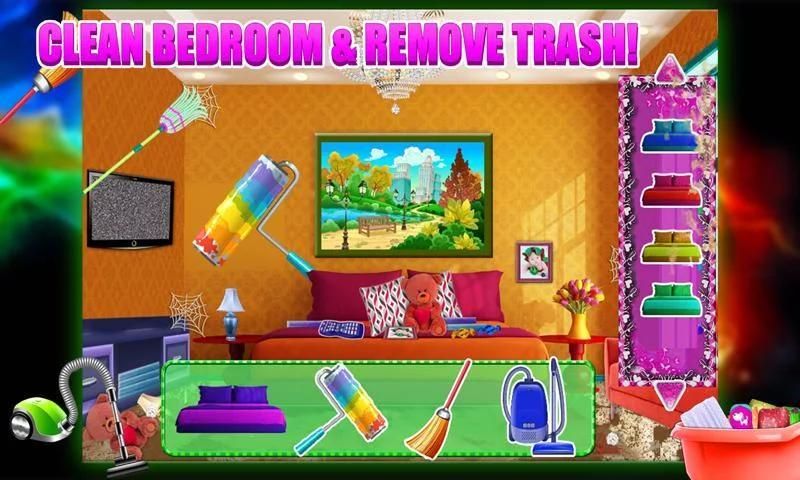 В комнате 3 звонит ... захватить ваши инструменты очистки и суете лучших номеров чистка и мойка обслуживание. Это не заканчивается здесь! Иметь опыт как ткань мытья девушки. Соберите все грязную одежду из комнаты и взять его в отдел elaundry в стиральной машине. У вас есть очень короткий промежуток времени, чтобы управлять всем этим. Так позволяет начать работу комнат очистки, сделать вашу комнату более очаровательной и красивой во взгляде. Украсьте свой интерьер по собственному выбору. Соберите все предметы из беспорядочного приема места один за другим и поместить их совершенно на своем месте.