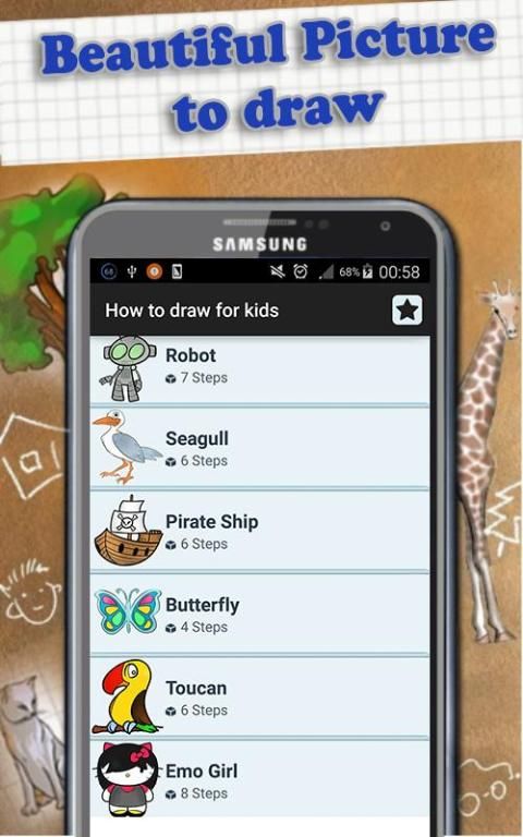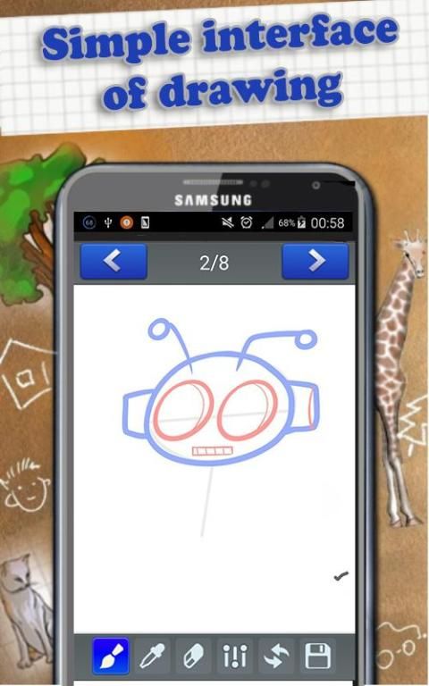 Это приложение позволяет использовать простые уроки рисования, чтобы нарисовать животных, героев мультфильмов, лица и многое другое думает. и его включает в себя более +30 фотографии и вещи, чтобы рисовать, каждая картина приходит с различным шагом следа.