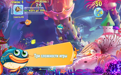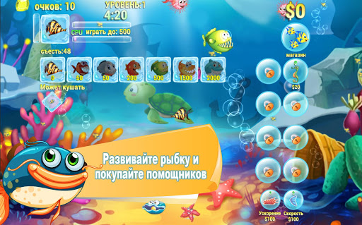 2. Пока рыбка маленькая, она может есть только планктон, затем других рыбок. В океане есть 2 типа рыбок, хищники и нет, поэтому старайтесь не сталкиваться с рыбками с большими зубами.