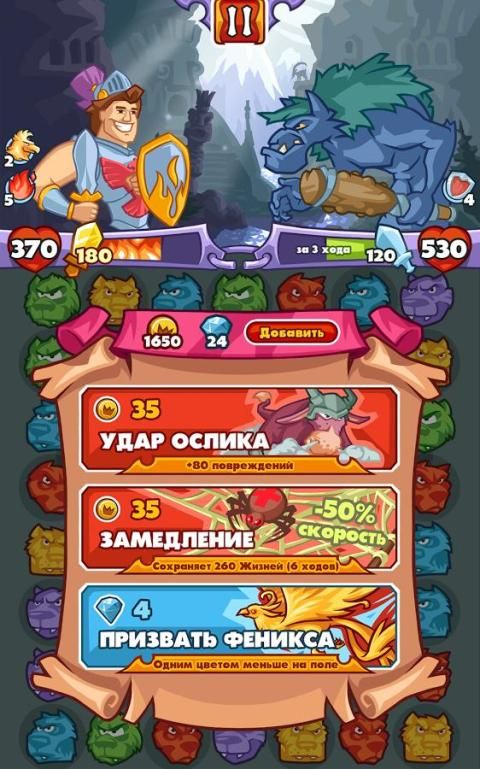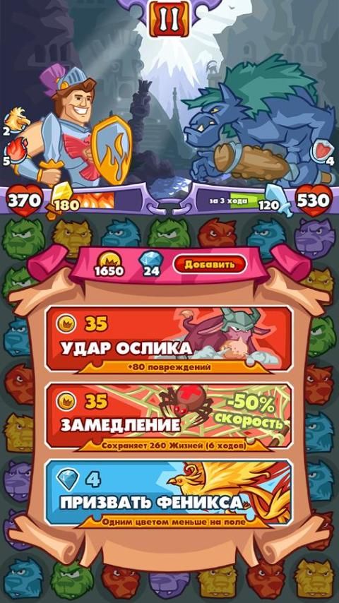 - Уникальная боевая система, основанная на механике «собери-три-в-ряд»!