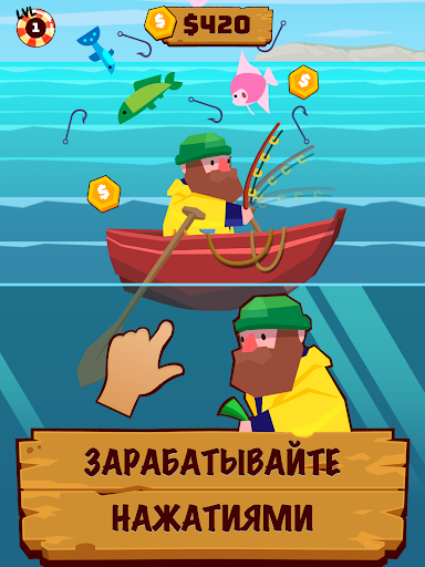 Простой и увлекательный игровой процесс: нажимайте, чтобы вытащить как можно больше рыбы и заработать деньги!