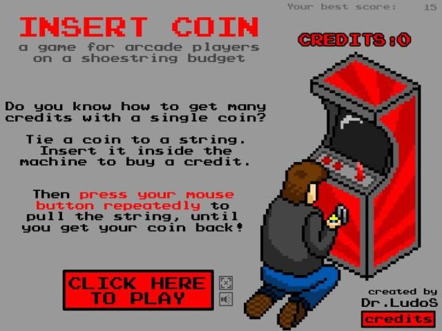 Вставьте Монета короткий и смешной одной кнопки игра, где вы должны "купить", как много кредитов, как это возможно с использованием игровых автоматах одну монету, привязанную к строке.