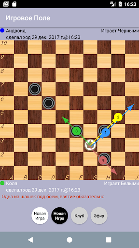 Стоклеточные шашки. Игра в шашки на доске 10×10 с дополнительными функциями: - Общение с партнером в рамках игры - Трансляция игры в режиме реального времени в интернет - Уведомление членов клуба