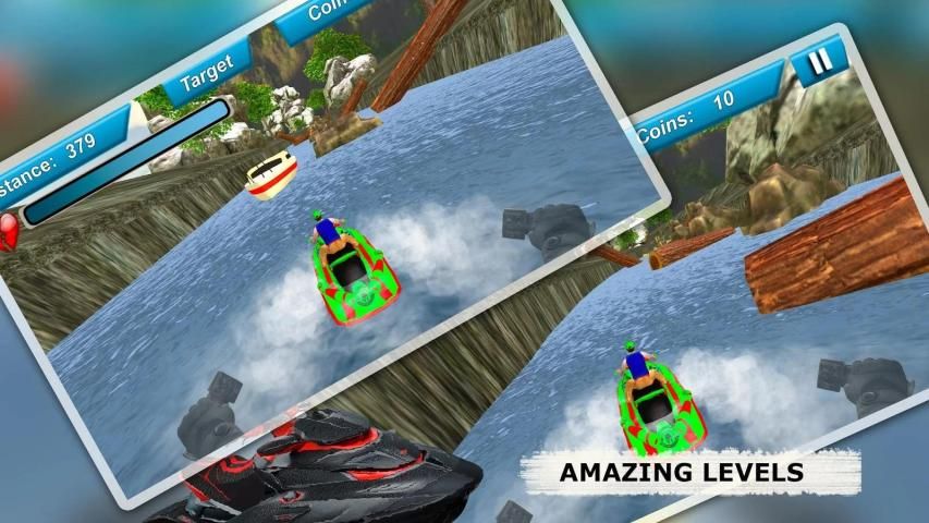 Выбор между различным jetskies, как только вы их разблокировать, различные темы для изучения и прогоните цели. Используйте ускоритель на право ускорить свой водный мотоцикл и завершить уровень цели.