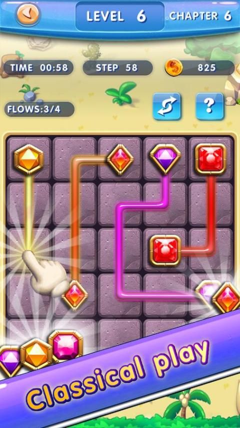 Пара все драгоценности и убедитесь, чтобы покрыть всю доску, чтобы решить каждый уровень в потоке. Подключите драгоценные камни без пути перекрытия!