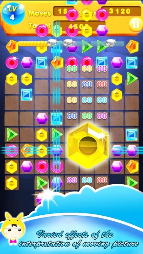 3. Устранить больше драгоценных камней линии быстро может получить дополнительные баллы.