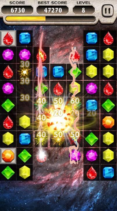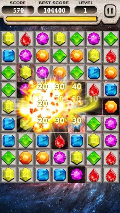 - Матч драгоценности, пока прозрачность доски, появится звезда Jewels.