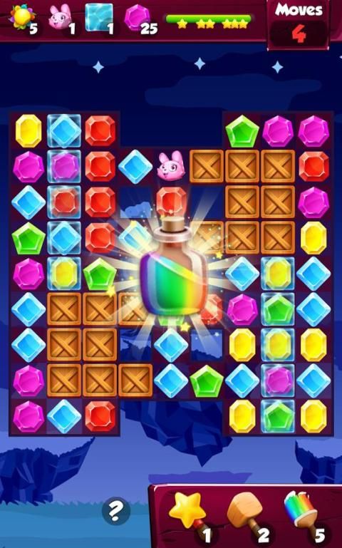 Давайте своп драгоценные камни, чтобы получить матч 4 драгоценности - Вы получаете счет и бомбы драгоценности