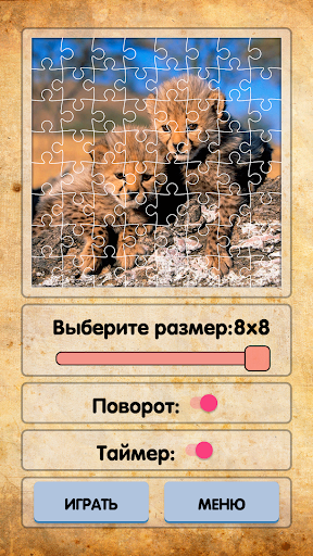 Эта игра для тех кто любит логические игры, логические задачи, головоломки для взрослых. Игра Пазлы отличается от других логических головоломок разнообразием картинок животных и удобным понятным даже детям интерфейсом. Игра содержит 8 бесплатных фонов на любой вкус. Играть в пазлы головоломки можно с уровнями сложности от 3х3 (детские пазлы) до 8х8 (пазлы для взрослых), а также Вы можете включить/отключить функции таймера и поворота. Собирать наши игры пазлы будет увлекательно как взрослым так и детям. Также вы можете собирать пазлы из любой фотографии.