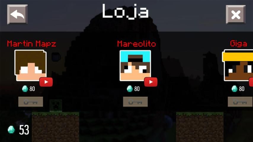 Вы можете захватить монеты и могут приобрести до 30 уникальных персонажей и всех тематических с Minecraft и различными правовыми YouTubers.