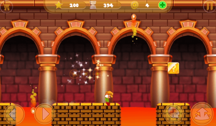 Mario-Jungle Adventures is a classiccal platformer with awesome graphics . In heat jungle , You must pass so much threats to run to target super world. On his road, You can use weapon to kill monster but weapon is hidden in somewhere. You can collect coins and other valuables along the way to increase your score. The game has a lot of traps, monsters, and unexpected situations through each level that we have built. ★ Features : + Beautiful graphics. + Simple controls. + Music and sound effects + Play for all ages + Game is free ★ How to play : + Use button to jump, move and fire + Jump on the top of enemies to defeat them. + Find weapon in flowers This is the best game for everyone . Play Mario-Jungle Adventures now !