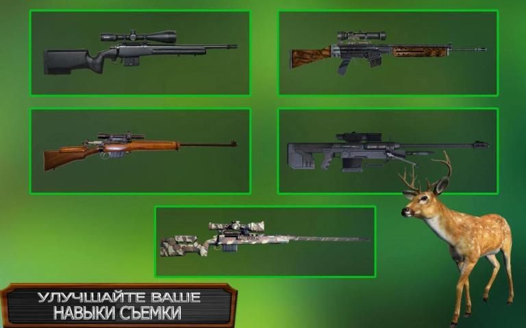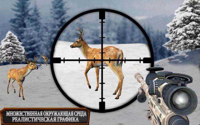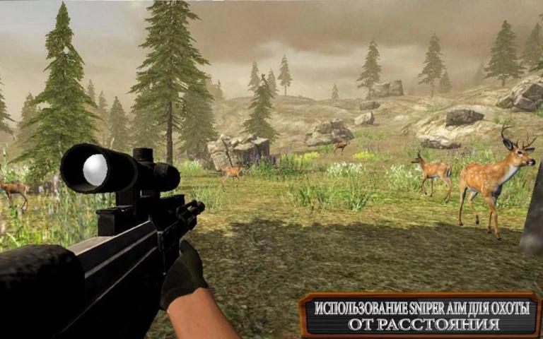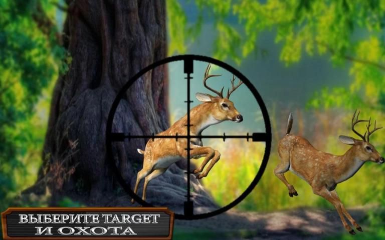 Захватите свое оружие и прицелитесь к животному между деревьями