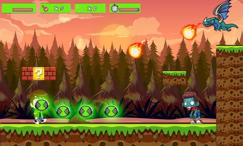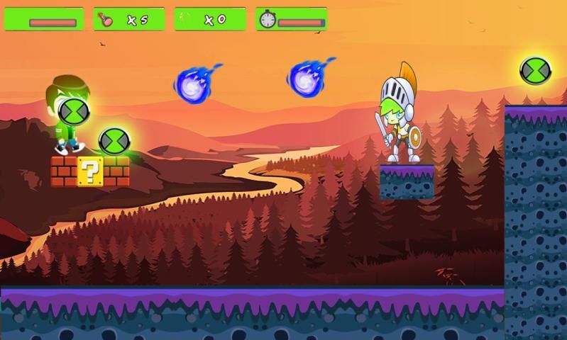 Бен Jungle Adventure упакован с массой функций от нескольких усилителей мощности в самых разных мирах со сложными уровнями, скрытые пути, бонусные уровни & угловых противника босса столкновений в конце каждого мира ..