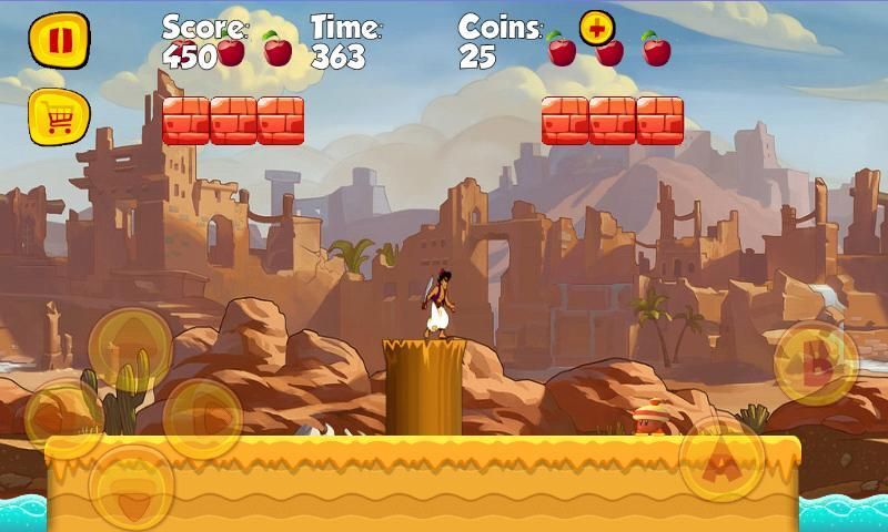 Aladino стремится глубоко внутри него, чтобы стать богатым, чтобы быть в состоянии соблазнить принцессу Жасмин и так, что Aladin быть богатым, вы должны помочь ему Sautet и бежать, чтобы собрать больше углов.