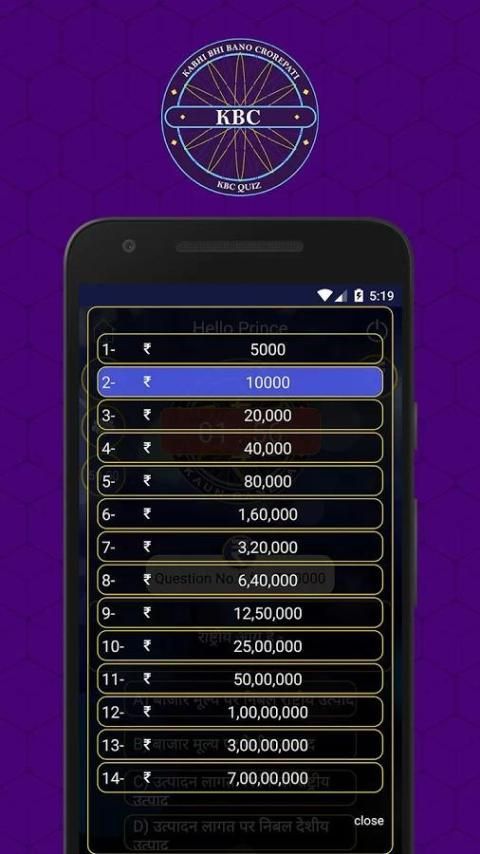 * Игра будет охватывать различные темы, такие как ГК (общие знания), индийская история, крикет, Болливуд, кино, международная, социальные науки, науки, Махабхараты, Ramayan, Коран, Библия, духовные вопросы и трудные вопросы тоже.