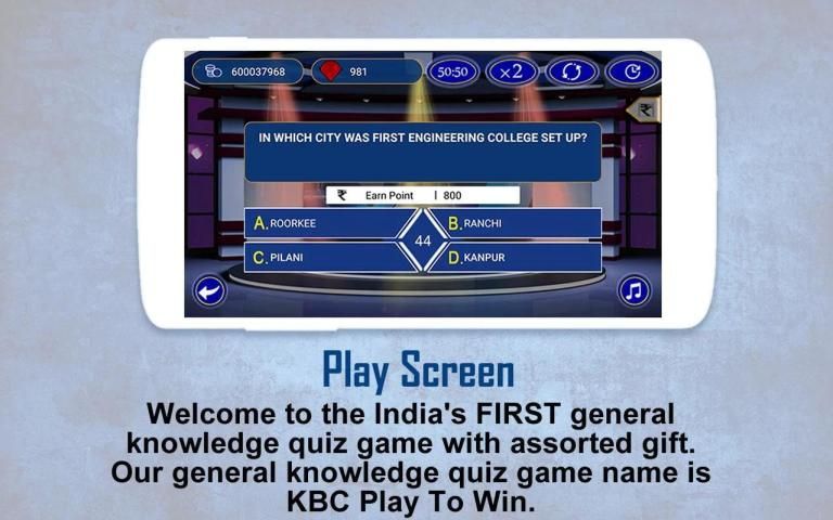 Добро пожаловать на ПЕРВОЕ общих знаний викторины игры в Индии с сборным подарком. Наши общие знания Название викторины игра KBC Play To Win.