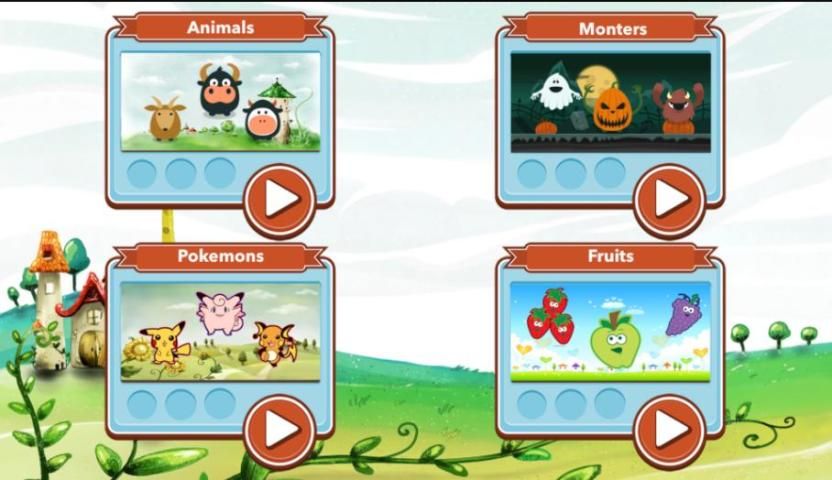 * 4 разные темы: животные, монстры, Фрукты и покемонов