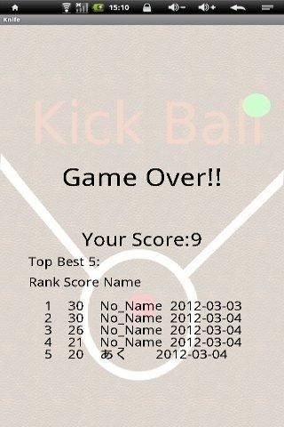 Kick a ball by a finger and hit the target. Kick a ball by a finger, hit the target. It is a very easy game. Please kick the ball in a screen with a finger.the direction and speed are transmitted to a ball. You get point when ball hit the target.The more point you get,the faster target be. When failing 5 times or more continuously, it is the end of a game.