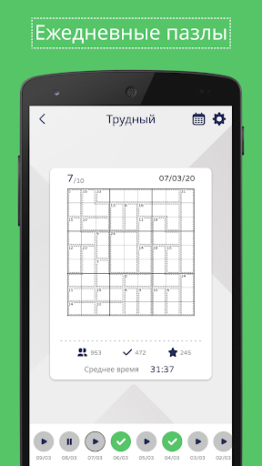 • Возможные числа для каждой ячейки от 1 до 9 (меньше на меньших сетках)