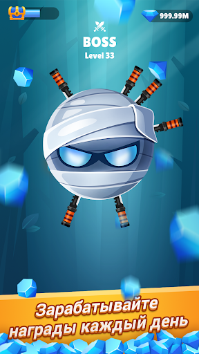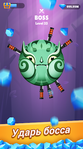 Направьте бревно цели, коснитесь экрана и бейте и ломайте боссов одного за другим. Чем больше вы нажмете, тем больше ножей вы сможете получить. Ударьте боссов на каждом 5 этапе и выиграйте огромные призы!