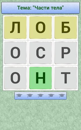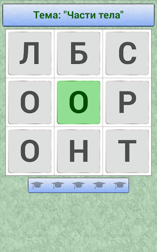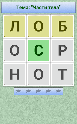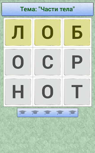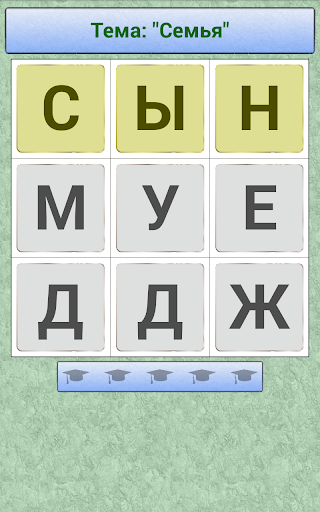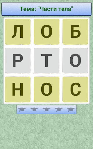 В начале игры на поле случайным образом появляются буквы из 3х слов на заданную тему.