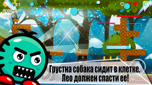 Королева похищала собаку и теперь собаке грустно в темной клетке. Лео должен спасти своего друга и убить королеву, чтобы пройти уровень. Будьте осторожны! Множество врагов (злые пчелы, пауки, рыбы и многие другие зеленые монстры) и препятствий будет на пути! Попробуйте собрать все ключи и монетки, которые вам встретятся. Стреляйте всех врагов! Добро пожаловать в джунгли! Путешествие начинается!