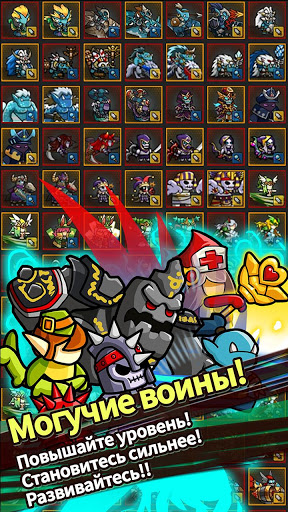 - Более 100 типов воинов с различными способностями!! Повышайте уровень! Усиливайтесь! Эволюционируйте!!