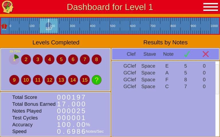 Проверьте свои навыки - Есть 3 (15 уровней в полной версии) уровней (отделенные для улучшения вашего мастерства) как для низких и высоких частот ключах.