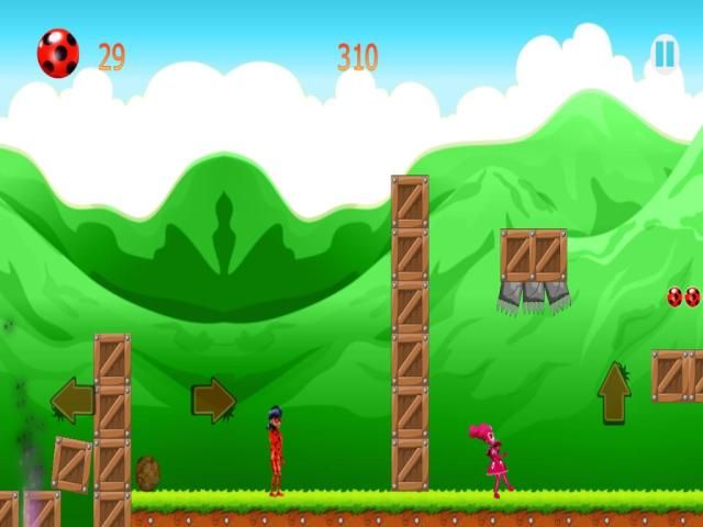 помочь Adrien Cat Нуар и Cat Noir Божья коровка для пропустить все abstacles и заработать больше пузырьков монету