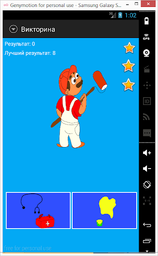 - режим викторины, где можно задать вопрос, какой предмет используется в какой профессии
